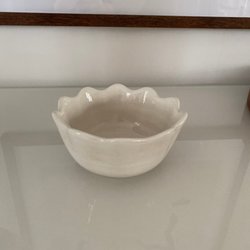 Hvid porcelænsskål med underkop, bølget kant