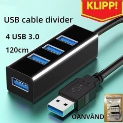 UBRUGT! USB-kabeldeler - splitter 4 x USB 3.0, 120cm