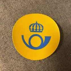 Gulblåt stofmærke Gamla Posten