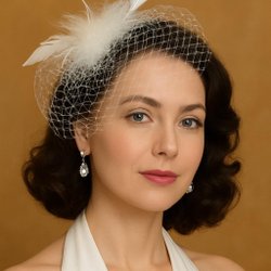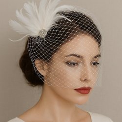 Brudslöja - fascinator med net, fjer & strass