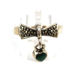 RING, 925S, Ø: 18-18,8mm (oval), 3,50g, sølv, markasitter, grøn sten, b: 3-17,4