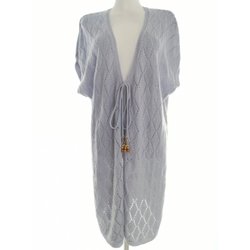 ...BEING CASUAL Lång Kofta Kappa Med Band för Dam Spetsbroderi Blå 44 Kort ärm