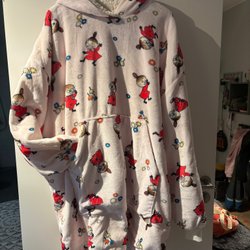 Hvid pyjamatrøje med katte motiv fra Temu, størrelse XL