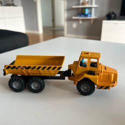 Leksaksdumper med släp i metal og plast