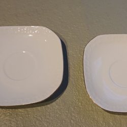 Reservedele 2 stk hvide firkantede tallerkener med guldkant fra Wavel i Polen