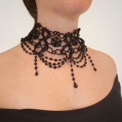 Sort gotisk choker – perler & dråber, viktoriansk stil