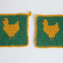 Retro Hæklet Påske Grydelap med Kyllingemotiv