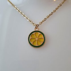 Halskæde med oval glas charm / vedhæng - Gul glas charm