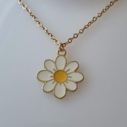 Guldfarvet halskæde i rustfrit stål med hvid blomst / marguerit