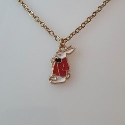 Guldfarvet halskæde (50 cm) med en kanin med rød jakke