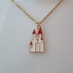 Guldfarvet halskæde med hvidt slot. Charme