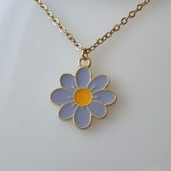 Guldfarvet halskæde i rustfrit stål med lys lilla blomst / tusindfryd