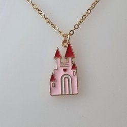 Guldfarvet halskæde (50 cm) med et slot som charme
