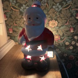 Ca 13,5 cm hög och det är svårt att mäta men borde vara en kupa med diameter ca 8 cm.