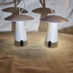 Lampskärmarna går i ljust rosa. Det finns några fläckar på dom.