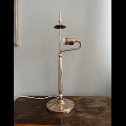 Ålder tidigt 1930-tal. Diameter ca 30 cm och höjd ca 35cm. Bra skick med patina. Finns äldre lagning/lödning på lamphållarens stag. Syns ej när kupan är på och minimalt utan kupa.