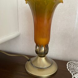 En elegant bordslampa med en vacker grön glasskärm. Lampfoten har en dekorativ design som ger lampan en unik karaktär. Perfekt som stämningsbelysning i vardagsrummet eller sovrummet.