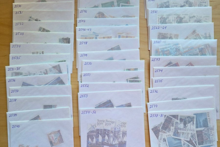 Massvara 2006 sorterade i kuvert. Blandade antal i kuverten. OBS inget 2555 med i samlingen.