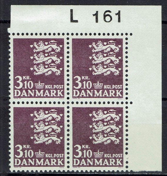 DANMARK. Afa 502. Rigsvåben. Marginal 4-blok. Ubr. ( 6938 )