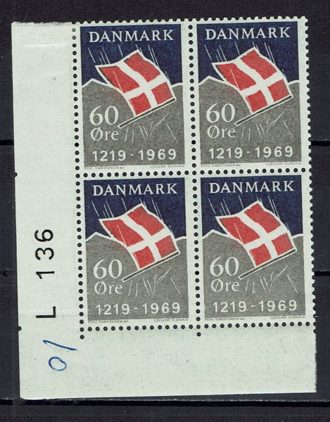 DANMARK. Afa 484. Dannebrog. Marginal 4-blok. Ubr. ( 6964 )