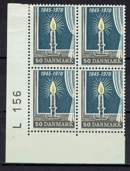 DANMARK. Afa 496, Befrielsen. Marginal 4-blok. Ubr. ( 6970 )