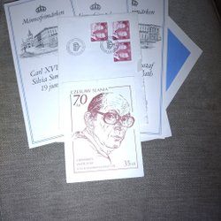 En komplett sats med förstadagsstämpel som minne av ett historiskt kungabröllop