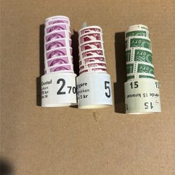 Frimärksrullar , alla ej kompletta men 1,30kr är det dvs nominellt värde 130kr.