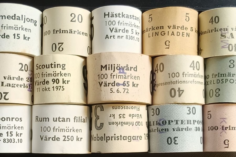 Fraktkostnad för brev: Brev debiteras enligt Postnords prislista för frimärken men frankering sker primärt med gamla rabattmärken. Kostnaden inkluderar emballage. Vi har tyvärr ingen möjlighet att stämpla filatelistiskt.