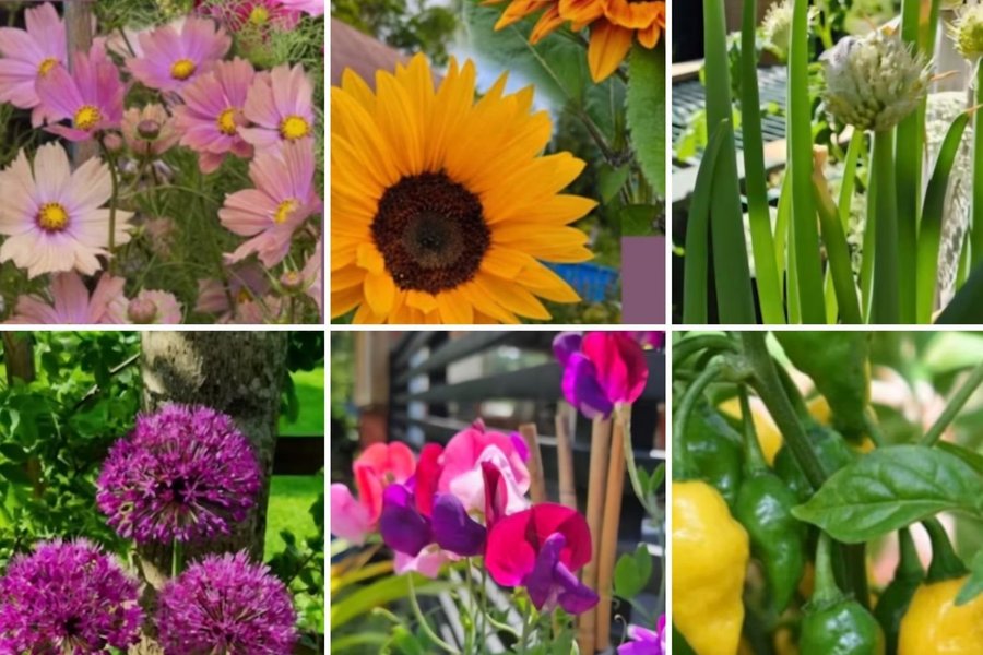 Innehåller: Rosenskära mix, Solros mix, Allium/Kirgislök, Luktärt mix, Piplök och Chili "Lemon Habanero"