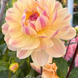 Vacker dahlia som kan förgylla ditt hem eller trädgård. Perfekt för att skapa en färgstark och levande atmosfär.