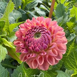Dahlia knöl redo att planteras. Blommar med vackra rosa blommor.