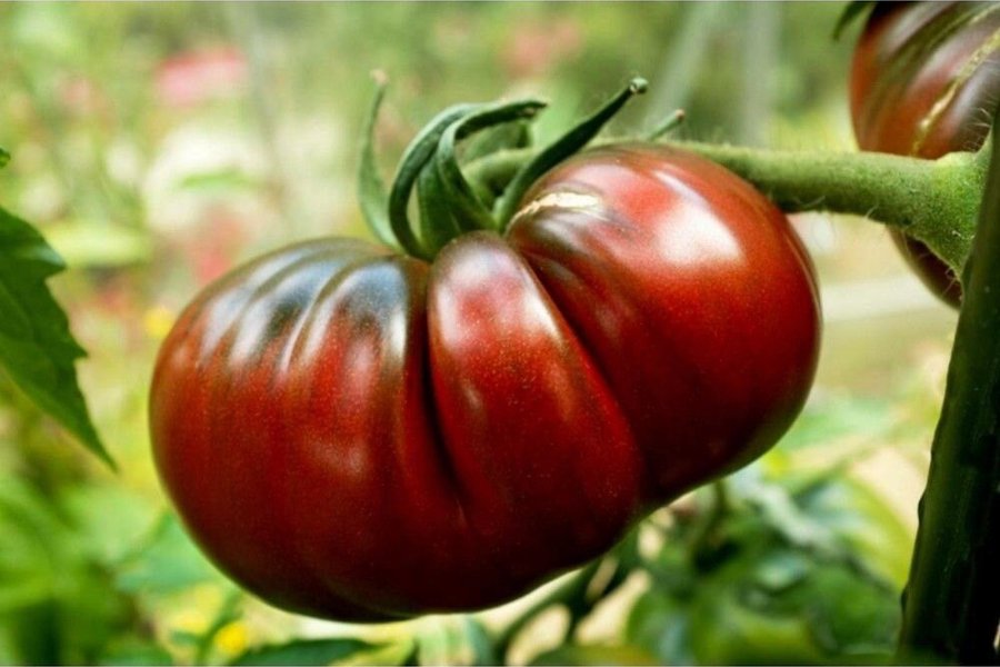 Här är Vorlon, en av de bästa mörka tomaterna. De har söt, len tomatsmak och blir ganska stora. Plantorna blir 1,5 meter höga. . Ger riklig skörd av stora, dekorativa tomater.