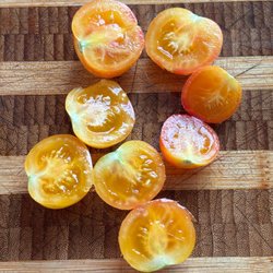 Små, citrongula, ovala frukter på 10-12 gram, i stora klasar. Varje klase får upp till 100 mycket saftiga frukter med mild, fin sötma. Högavkastande för växthus och varma utelägen. Mild fin sötma. Höjd: 200 cm.