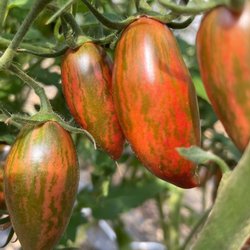 Dvärgbusktomat som får massor av ovala tomater som väger ungefär 35 g. Tomaterna är spräckliga i en färgsprakande mix av rött och orange. Passar fint att odla i kruka eller ampel. Auktionen avser 10 st fröer samfraktar