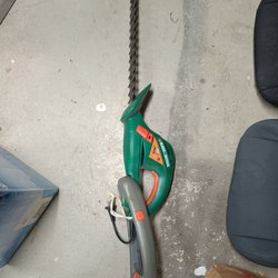 En Black & Decker häcksax med ett 51 cm blad. Inkluderar ett skyddsfodral för bladet.