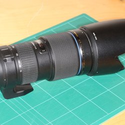Ett trevligt Tamron AF 90mm 1:2.8 Macro objektiv. Objektivet kommer med motljusskydd och linsskydd.