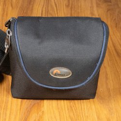 Säljer en praktisk kameraväska från Lowepro. Väskan har plats för kamera och tillbehör. Den har en justerbar axelrem och ett handtag för enkel transport. Perfekt för fotografering på resande fot.