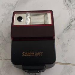 Kamera blixt för Canon autofokuskameror. Blixten är avsedd för att ge extra belysning vid fotografering. Den har en vridbar blixtdel som kan justeras i olika vinklar, från 0 till 90 grader. Blixten har en strömbrytare med lägena AC, OFF och HV BATT. Det finns även indikatorlampor för "auto OK" och "ready/test".