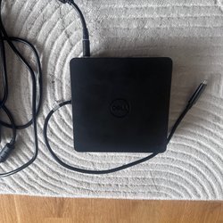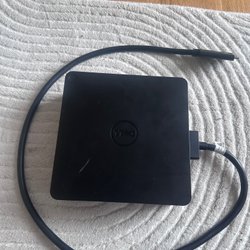Dockningsstation från Dell. Ansluts till din bärbara dator för att utöka anslutningsmöjligheterna. Har flera portar för video, USB och nätverk.