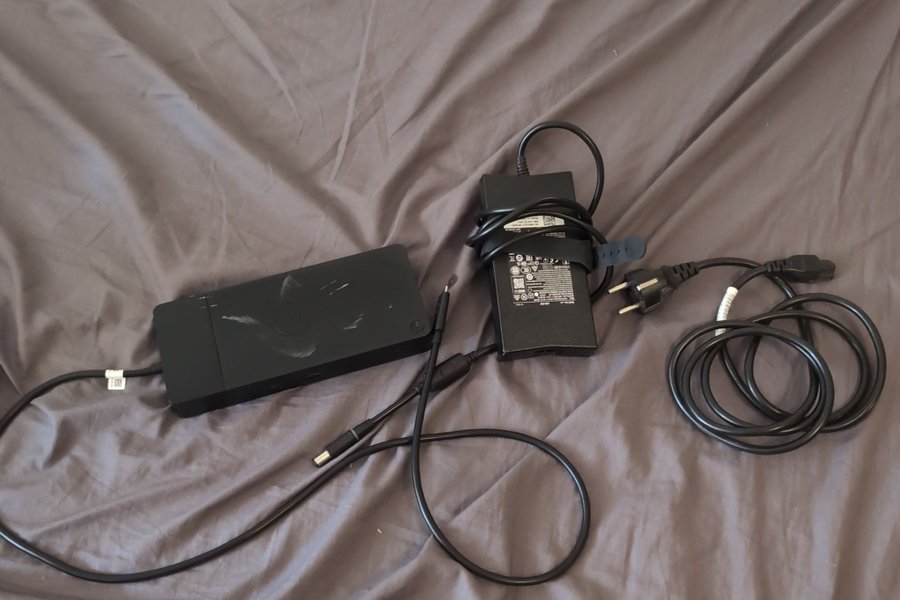 Dell D6000 Universal Dockingstation med strömadapter och kablar. Ansluts via USB-C.