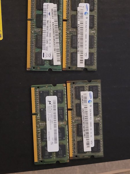 Fyra RAM-minnen. Två Samsung 2GB 2Rx8 PC3-10600S-09-10-F2 och två Micron 4GB 2Rx8 PC3L-10600S-9-11-FP.