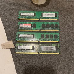 Tre RAM-minnen. Ett Samsung 2GB 2Rx8 PC3-10600U-09-10-B0, ett Micron 2GB 1Rx8 PC3-10600U-9-10-A0 och ett Nanya 2GB 1Rx8 PC3-10600U-9-10-A0.1333.