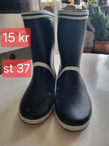Jag har ett par regnstövlar i st 37. Dom e använda men där e inga fel på dom mer att dom behöver tvättas av.