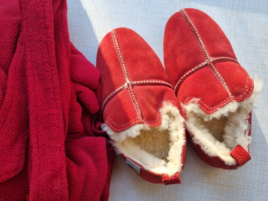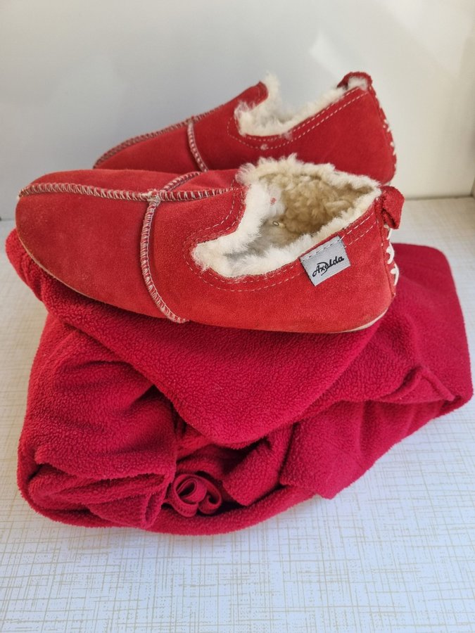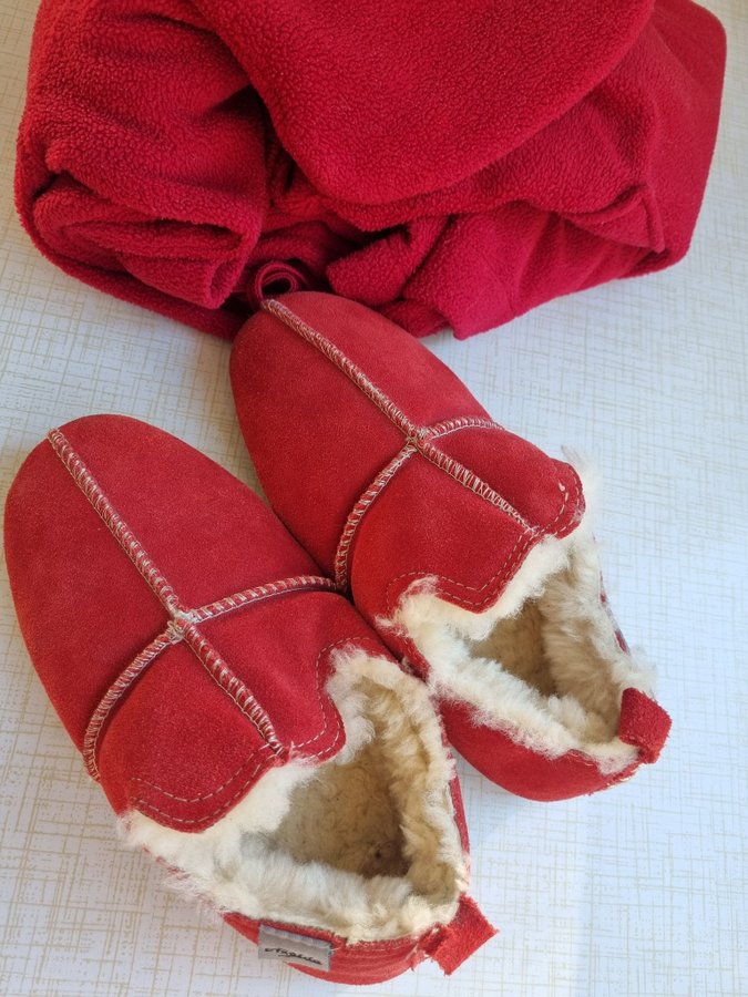 Set Åselda Skinntofflor fårull + morgonrock Hemtex strl 36 158 /164 tossor