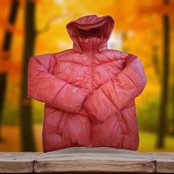 Söt jacka med enhörningar och regnbågar. Jackan har en huva och dragkedja fram.