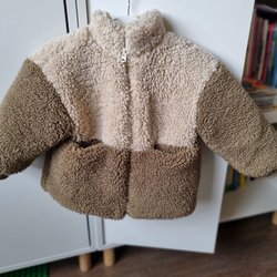 Brun jacka med huva och fuskpäls. Jackan har två fickor framtill och stängs med dragkedja. Mycket bra i skick. Storlek 86. Kan användas som höst eller vårjacka. Början till vinter. Liten märke se bild.