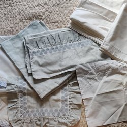 Vet inte märke, kanske hemmagjord. Köpt på secondhand. I bra skick men ser lite nopprig ut. Uppskattningsvis strl 68 men rymlig.