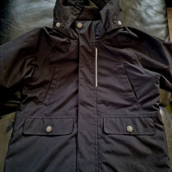 Vit jacka med huva och dragkedja. Jackan har fickor med dragkedja på sidorna. Så fin.använd fåtal ggr. Stlk 120..