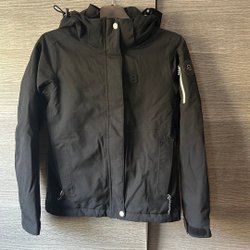 Säljer en vinterjacka från Kappahl storlek 140, tyvärr saknas luvan och det har släppt i limningen vid handleden, se bild. Går att limma fast igen. Begagnat skick