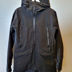 Snygg jacka i svart, grått och vitt. Jackan har en huva och dragkedjor framtill.